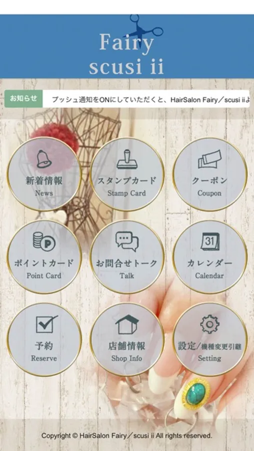 「HairSalon Fairy/scusi ii」公式アプリです。