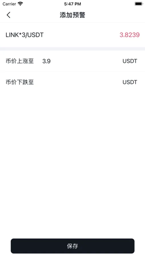 2、设置对应要监测的价格,可设置上涨或者下跌