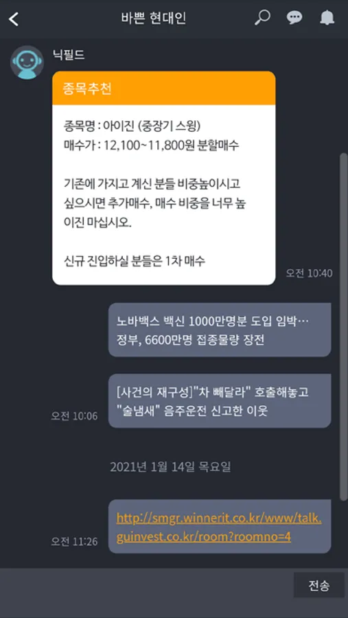 - 전문가의 추천종목을 추천가 비중 등으로 정리하여 안내가 되고 추천된 종목을 매도할때까지 실시간으로 리딩해드립니다.