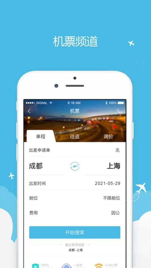 “铁航商旅TMC”是由铁航定制研发,拥有软件著作权的自主差旅系统。“铁航商旅”前端是一款面向国内企事业单位的差旅服务产品,提供商旅产品预订、订单管理、日程管理、审批管理、费控管理和差旅管理等相关功能。目前“铁航商旅”前端已支持:APP(铁航商旅)、PC(tmc.atmc.vip)、H5(h5.amtc.vip)、小程序。