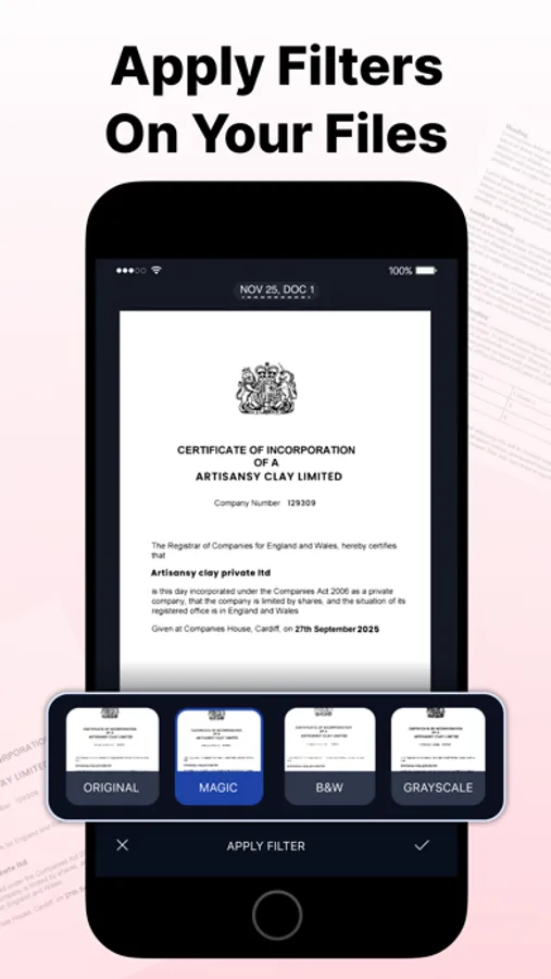 This document scanner app already features a smart algorithm for accurate edge detection and low-light scanning. For further improved scanning results, you can manually edit borders, orientation, and even apply filters.