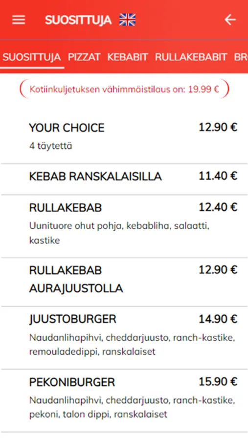 Valittuasi halutun ruoka-annoksen, lisäät sen ostoskoriin – tai valitset esim. lisätäytteitä. Voit tehdä vielä