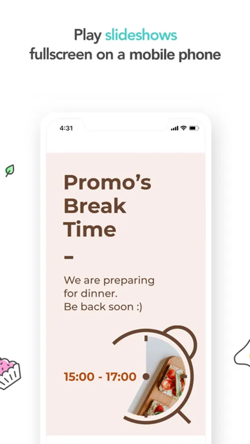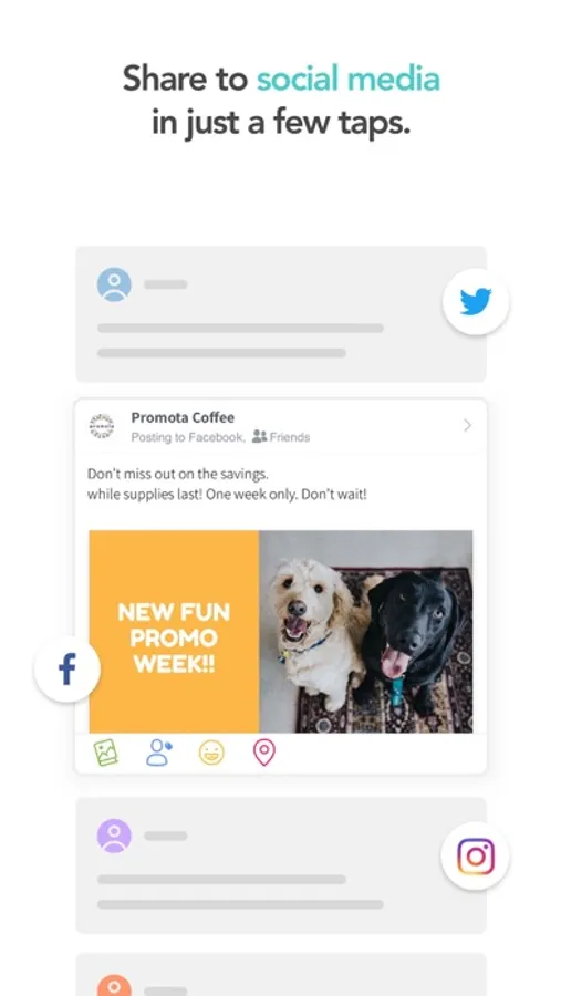 Promota gives you access to hundreds of customizable templates. With Google Chromecast, you can display them on any TV or monitor with an HDMI port. With Fullscreen Mode, you can display them directly on your phone or iPad. If your business is online, you can share them straight to social media.