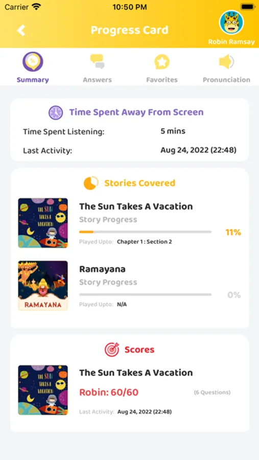 The App uses its proprietary speech recognition technology to Improve your child's Comprehension, Memory, Pronunciation, Imagination, Vocabulary; and above all master the art of *Active Listening* with very *Limited Screen Time!*