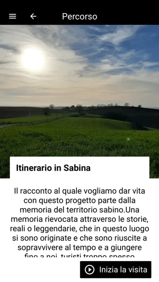 Il progetto nasce allo scopo di digitalizzare il patrimonio culturale d’Italia e del mondo attraverso la realizzazione di una piattaforma aperta di condivisione di contenuti per la creazione di App per visite guidate. Per dar vita al progetto si è scelta l’alta Sabina come luogo d’interesse storico artistico da valorizzare e sono stati creati 3 tour di visita che conducono i visitatori da Roma verso Fara Sabina e il celebre borgo di Farfa.