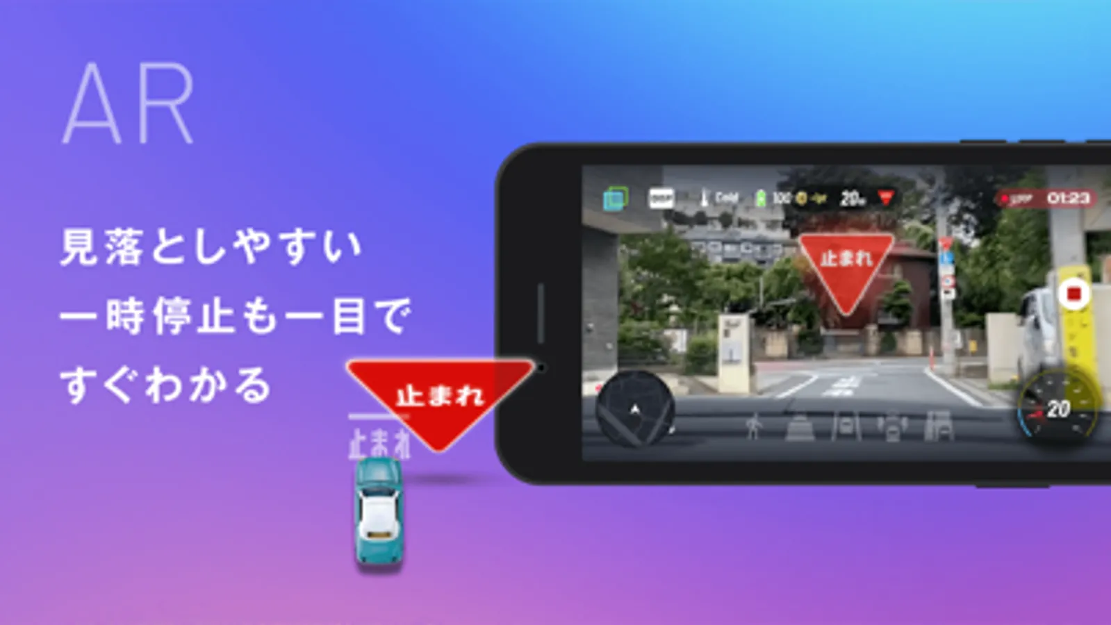 AIを使ったアラート機能で運転中の危険や違反をお知らせしたり、見落としやすい一時停止などをARでわかりやすく表示します。安全で思いやりのある運転にはポイントを付与。