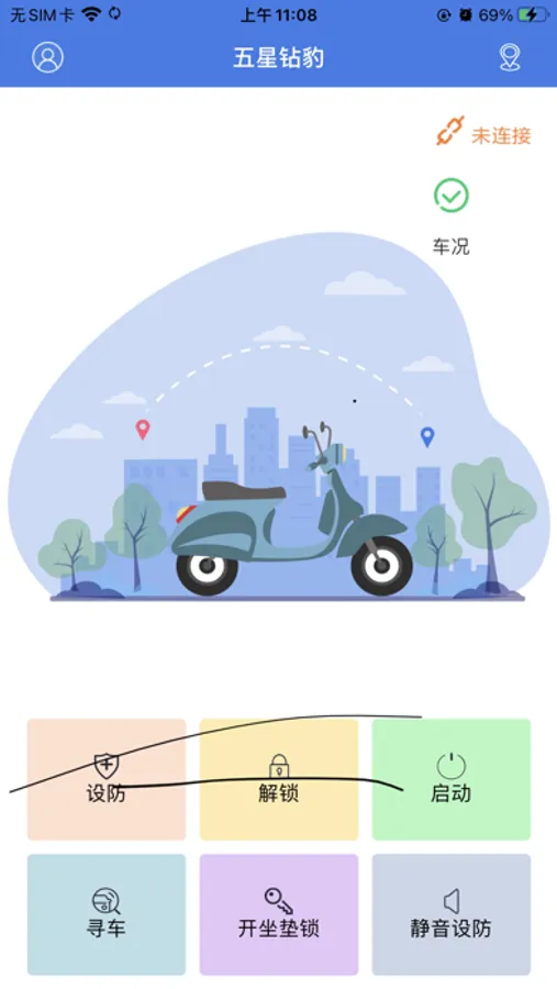 主页模块中,你可以了解到电动车的码数以及电量等信息,并且可以控制报警器。