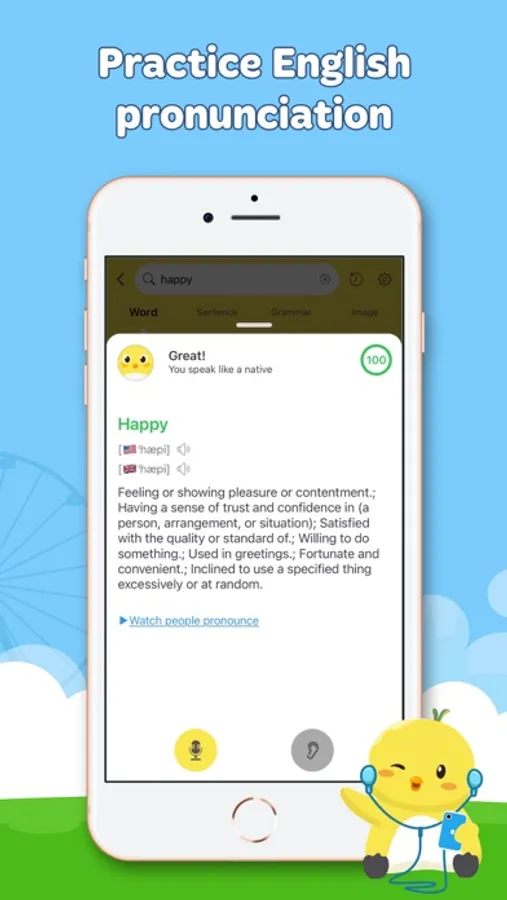 Improve English pronunciation: Dunno English Dictionary – English Translation helps you practice speaking skills and get clearly feedback.