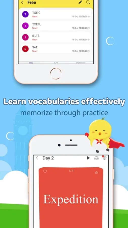 - Double memorization: review English vocabulary through Flashcard, quiz