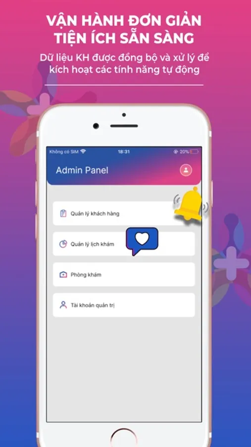 Cùng với phiên bản trên máy tính, phiên bản ứng dụng trên điện thoại với thêm tính năng Thông báo khi có lịch hẹn mới hay khi lịch hẹn thay đổi giúp quản lý lịch khám hiệu quả, mọi lúc mọi nơi.