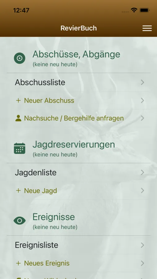Die Web Software zur einfachen Verwaltung Ihres Jagdreviers, geeignet für Großreviere, Jagdgesellschaften und Eigenjagdbesitzer, jetzt inklusive JagdTagebuch Funktion.