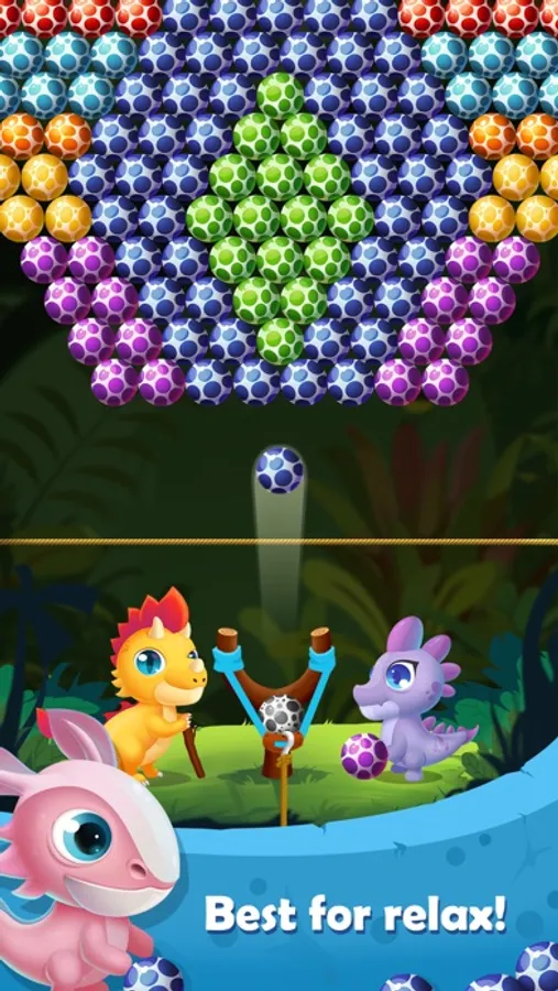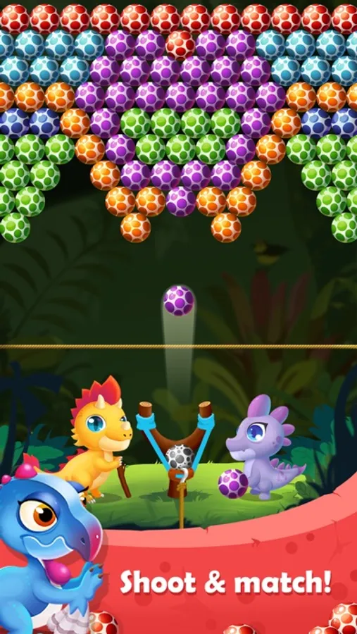 Let's join Alex - A fun dinosaur participating in a bubble shooter game and collect puzzle pieces to rescue his companions.