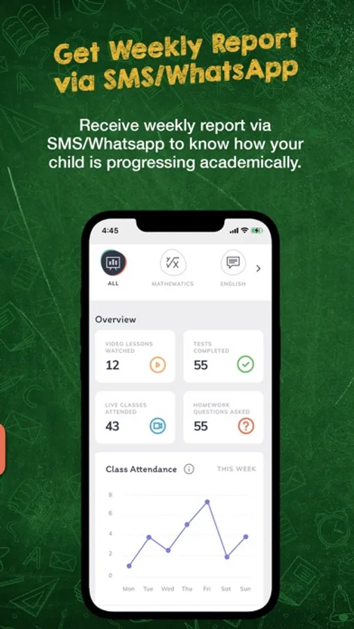 Receive weekly reports via SMS/WhatsApp to know how your child is progressing academically