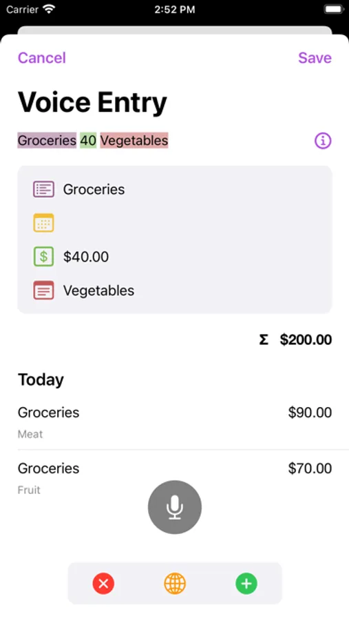 Use voice recognition to quickly enter the data; share it with friends and family via iCloud sharing.