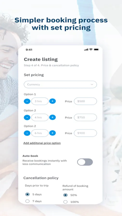 Save time by setting hourly packages, preset your rules, and departure info to be automatically sent to confirmed bookings.