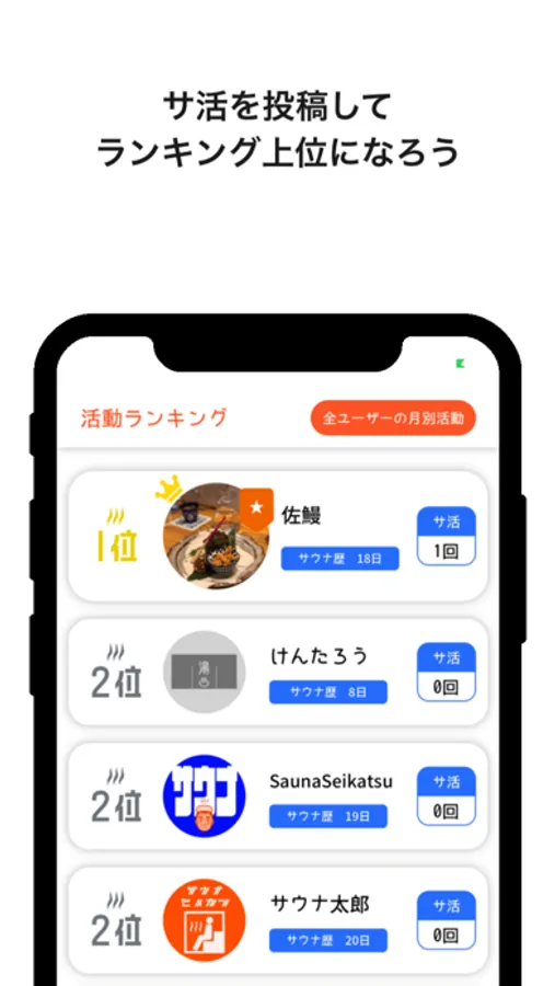 全国のサウナを登録、サ活を投稿して、サウナ生活を楽しもう。