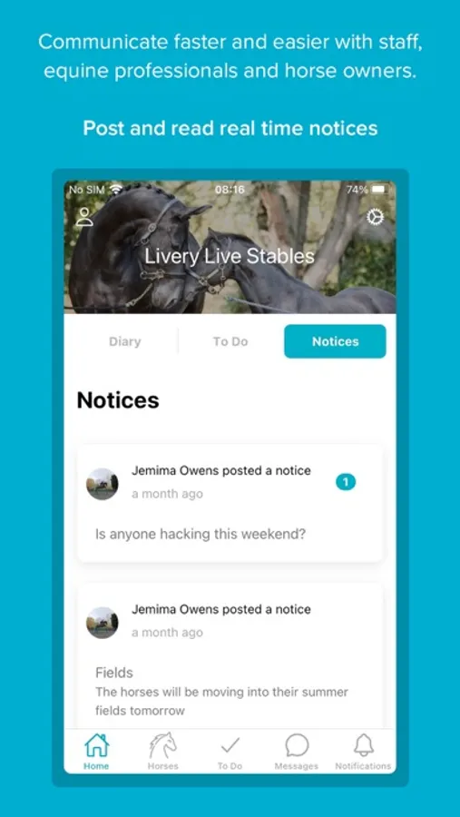 Messages: Communicate directly with your yard and horse owners through our messaging section.