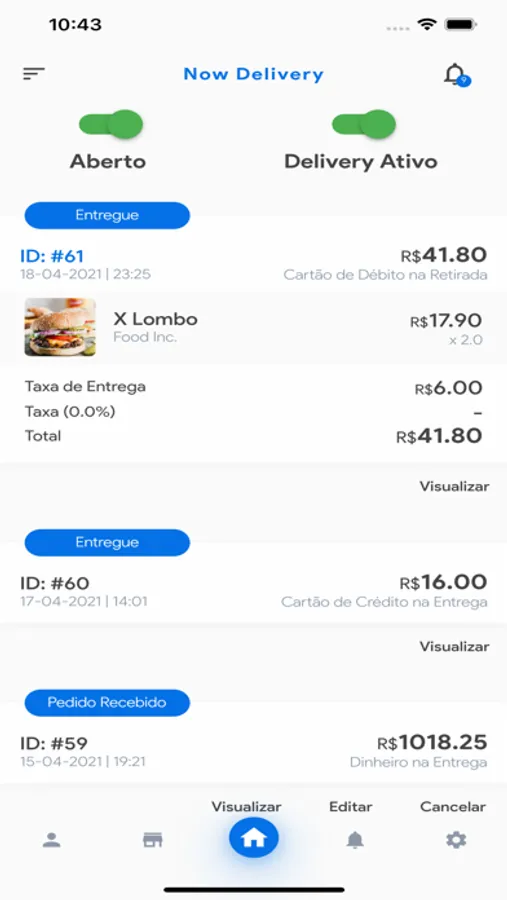Controle seus Pedidos e Status de Funcionamento no Aplicativo! Acesse seus pedidos de seus estabelecimentos facilmente pelo app e controle suas demandas e entregas. Receba notificações ao receber novos pedidos e altere os status facilmente.