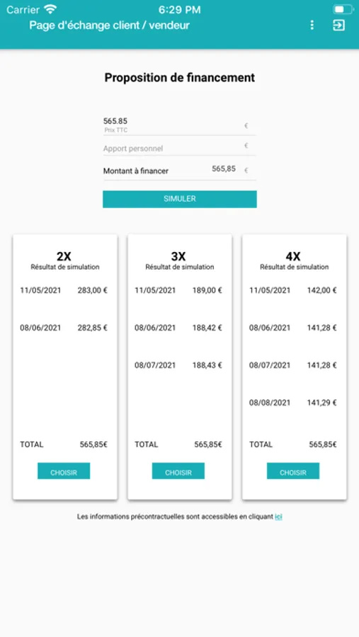 Simulez le financement du client, photographiez les pièces justificatives de vos clients : l’application s’occupe de pré-remplir le contrat de financement qui pourra être signé électroniquement.