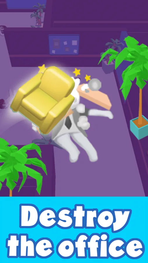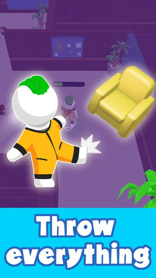 You are an office worker, tired of work, you are not paid money, you are angry. Grab office furniture and throw it at your colleagues and your boss! No one should survive! But be careful and don't get caught by them!