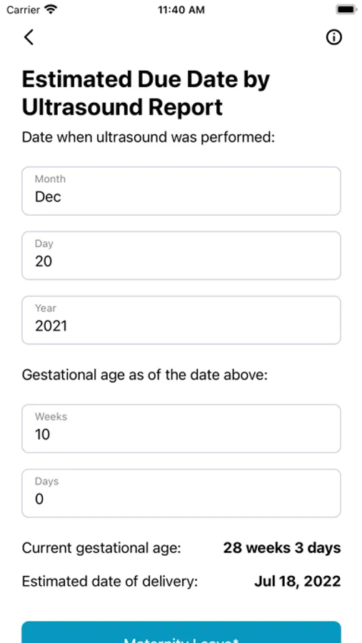 Obstetric Calculator will help you determine gestational age in weeks and days as well as estimated due date using last menstrual period, ultrasound report, ovulation/IVF and other methods.