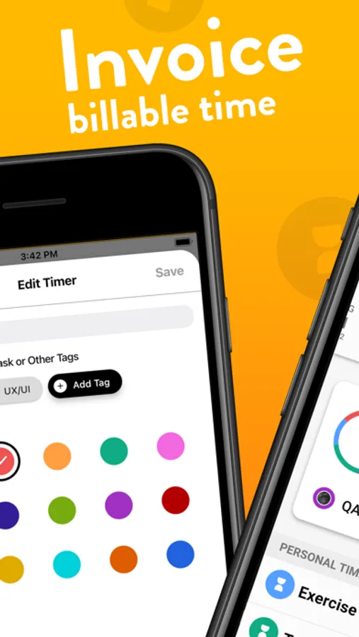 Time tracking doesn’t have to be bland or boring. With a color pallet of 15 bold colors and a custom color picker at your fingertips, you have hundreds of options available to make your UI as colorful and unique as you are.
