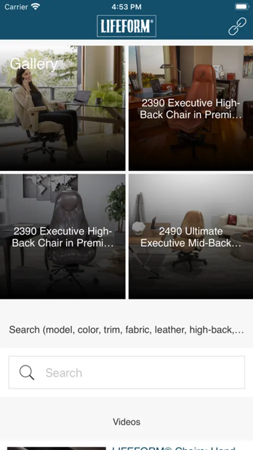 The Image Gallery is searchable by various terms such as; model name or number, upholstery color, trim type, etc so that the user can easily view photos which are relevant to them.