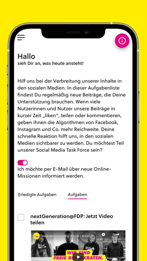 „Freie Demokraten“ ist die offizielle App der Bundespartei für FDP-Mitglieder. Sie bündelt digitale Angebote für den Wahlkampf und ist die Plattform für die digitale Parteiarbeit.