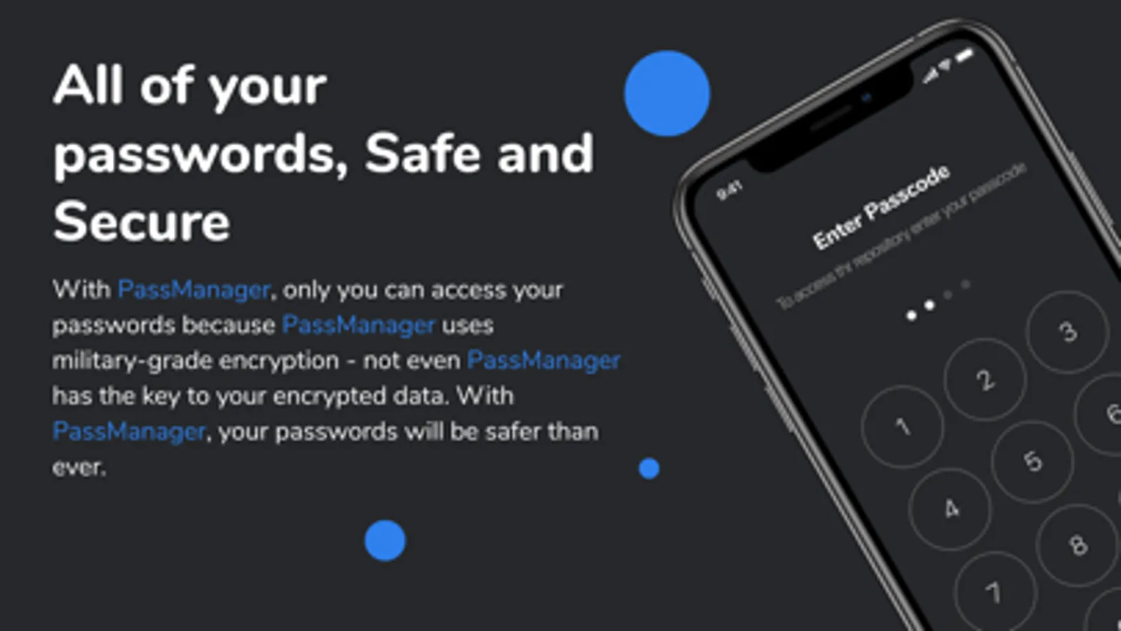 PassManager - Ultimate keeps all of your passwords safe and secure.