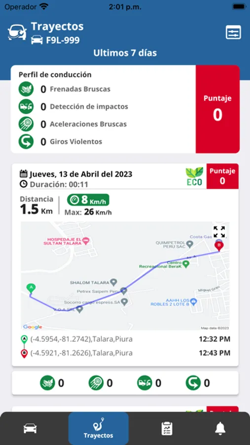 - Perfil de conducción (aceleradas, frenadas y giros bruscos)