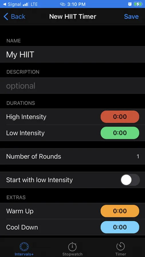 Free programmable High Intensity Interval Training (HIIT) app with the following features: