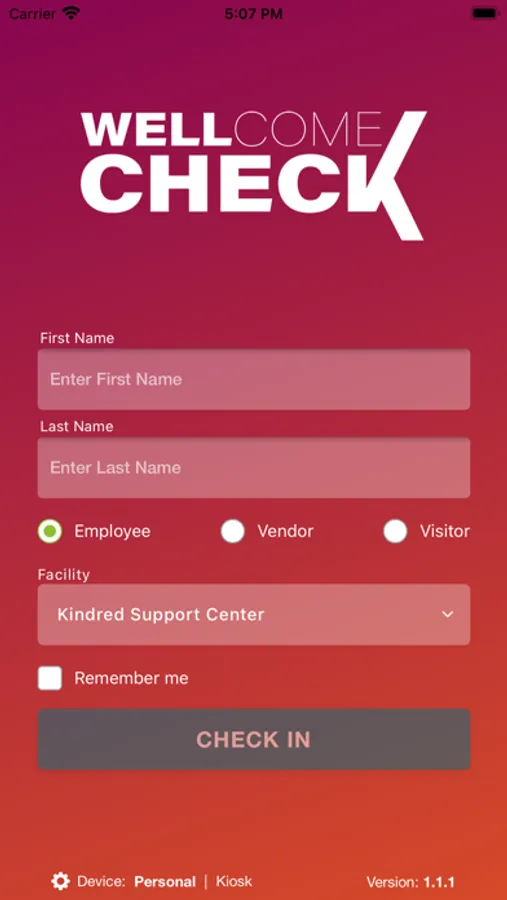 The Wellcome Check app provides a quick and convenient way to document health screening attestations for employees, vendors, and visitors at our sites of service. Wellcome Check maintains our commitment to the safety and wellbeing of our team members in all our work settings.