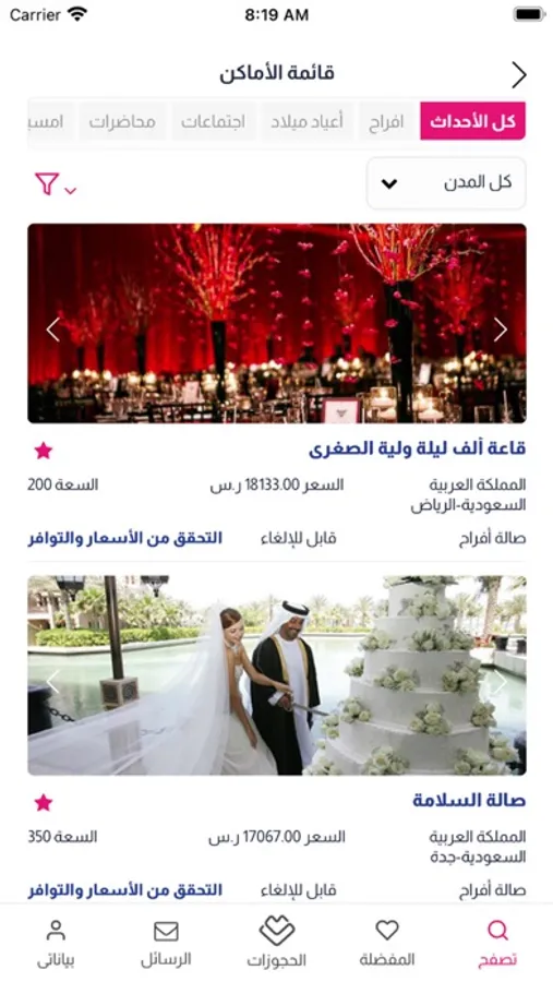 2. شاهد صور القاعة والخدمات المقدمة بتفاصيلها وأسعارها