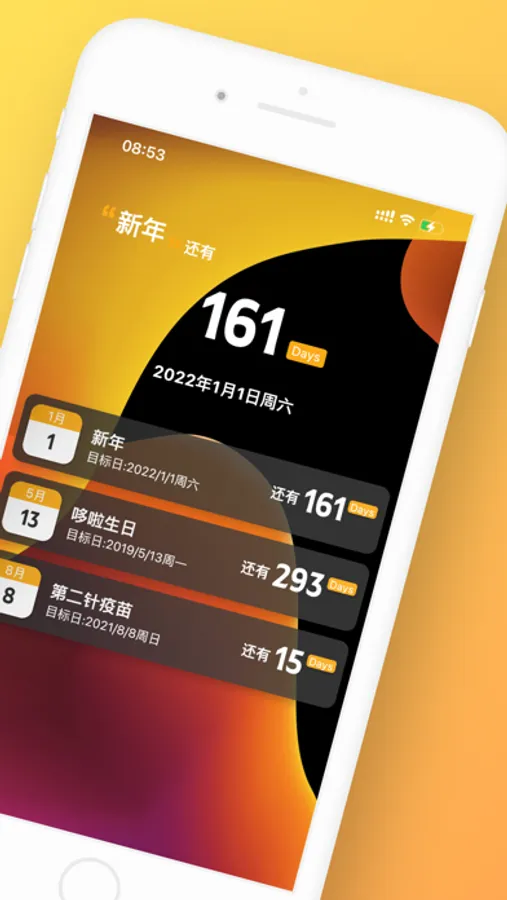 Day calculation: how many days are there or how many days have passed before the target day, or you can set the target day repeatedly in the format of year, month, etc.