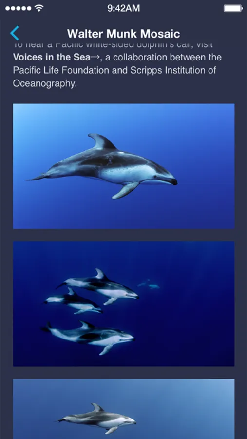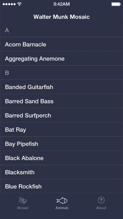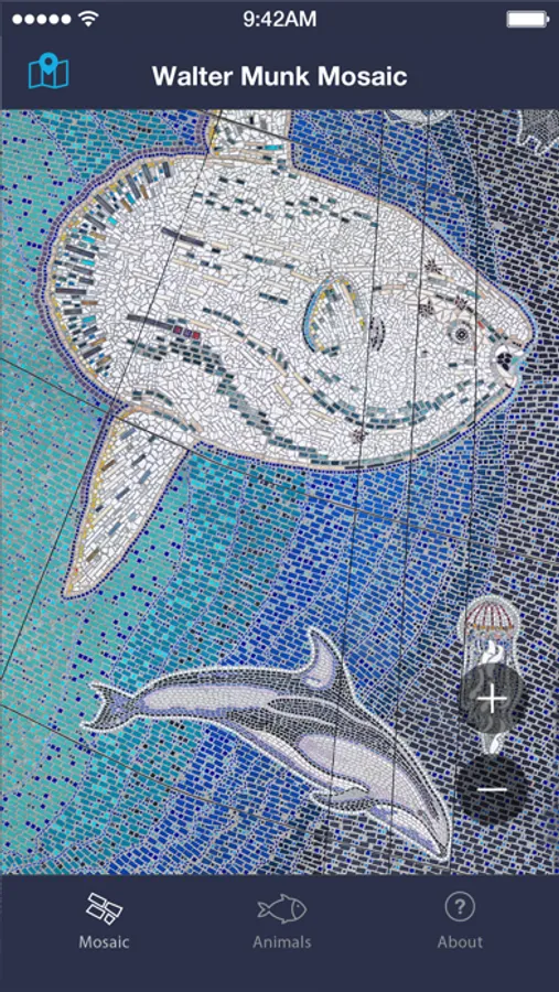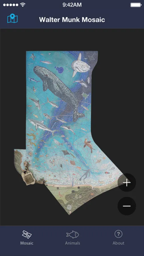 If you are in La Jolla at the mosaic map in Kellogg Park you can use the augmented reality feature of the app to identify and learn about the marine life in the mosaic.
