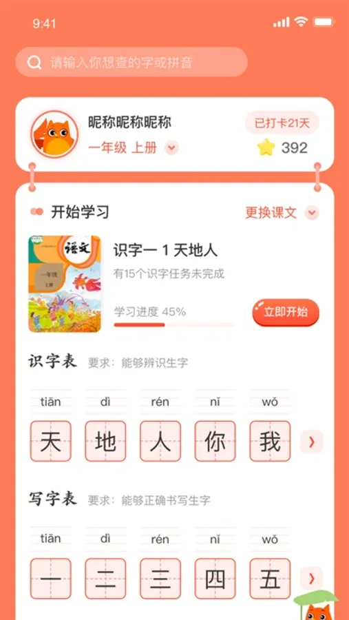 花漾识字是一款针对学龄前及小学各年龄段学生使用的APP。功能丰富,简单易用,同步小学语文教材,四大学习模块形成完整学习闭环,为家长和孩子们轻松解决语文学习中的识字、写字、练字、朗读问题。