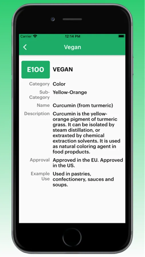 - Green. That means the additive is derived from a plan or it is a plant based ingredient.