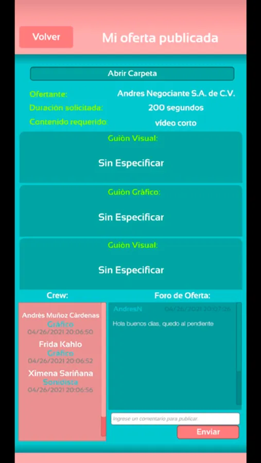 Con Perspectiva puedes acudir a un extenso crew de profesionales en arte digital para que puedan desarrollar junto a ti tus proyectos soñados. Entre los artistas se encuentran productores, sonidistas, directores, artistas gráficos, animadores, entre otros.