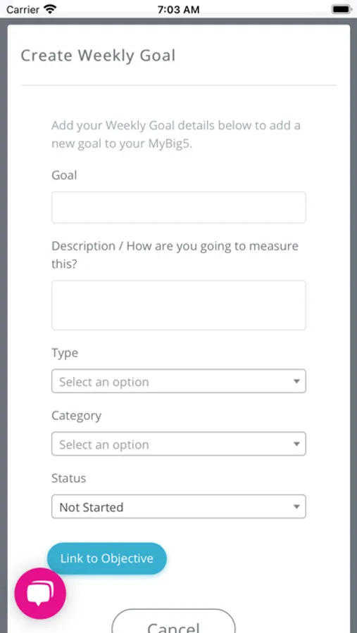 Enter 5 weekly goals that align with your company objectives, and you will be more engaged. Your company will have better profits because of better directional alignment of personal goals and company objectives. You are in charge of your performance reviews and they will be fact based and objective. Artificial intelligence will help you selecting the best weekly goals. AI will also create dashboards and reports, forecasting better profits and increased employee engagement.