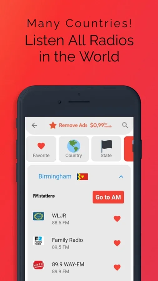 Have you ever wished to find all world radio channel selections on a single place? Will you like to grow your FM Radio channel picks? If your answer is yes, this radio tuner app has got you covered. Now you can not only tune into different radio online global stations but also pick your favorite channel and save it for easier access later on. Be it USA, UK, New Zealand or Puerto Rico, the world live radio app has got FM Radio and AM Radio channels from every country, every state and every city. More countries will be added soon!