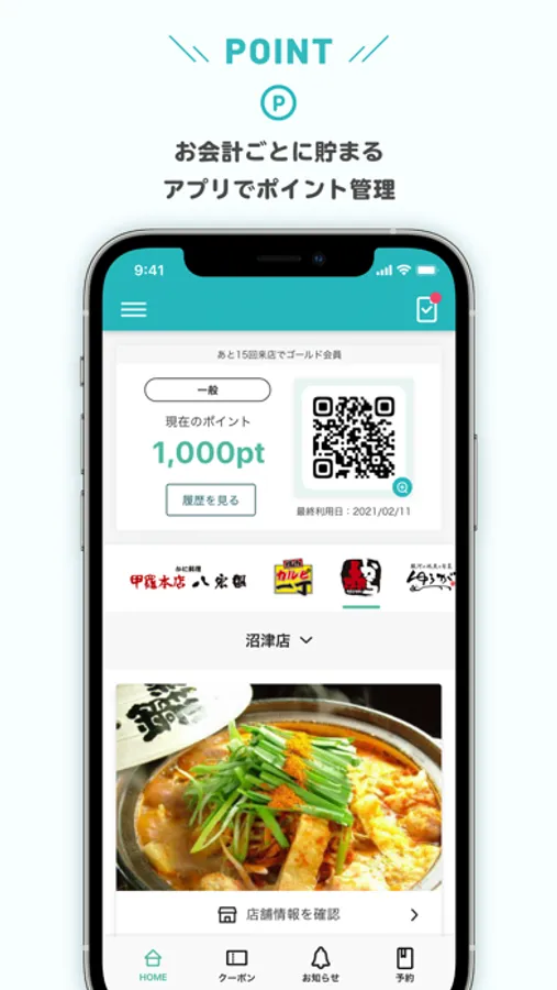 各店をご利用すると、お会計ごとに雄大ポイントが貯まります。