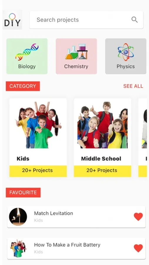 Enjoy a wide range of detailed science projects categorized based on age groups and fields of science.