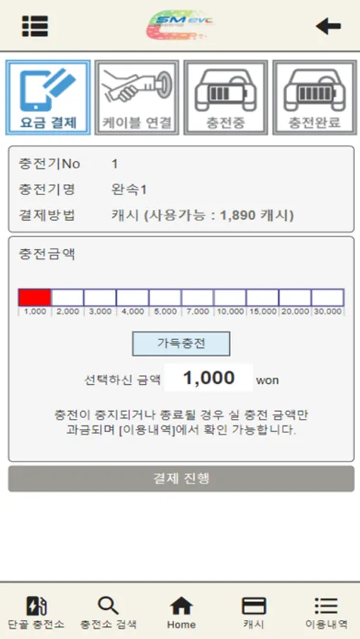 충전소에서 결제도 가능하지만 앱에서 결제하여 쉽고 빠르게 전기차 충전을 할 수 있습니다.