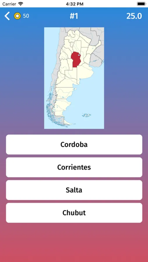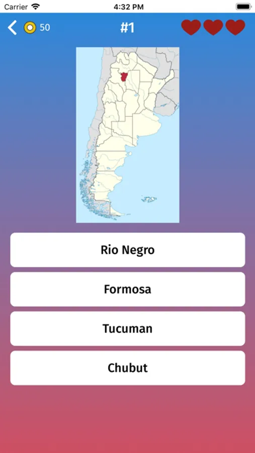 - Multiple choice: guess the states of Argentina, by selecting one of the variants like in exam.