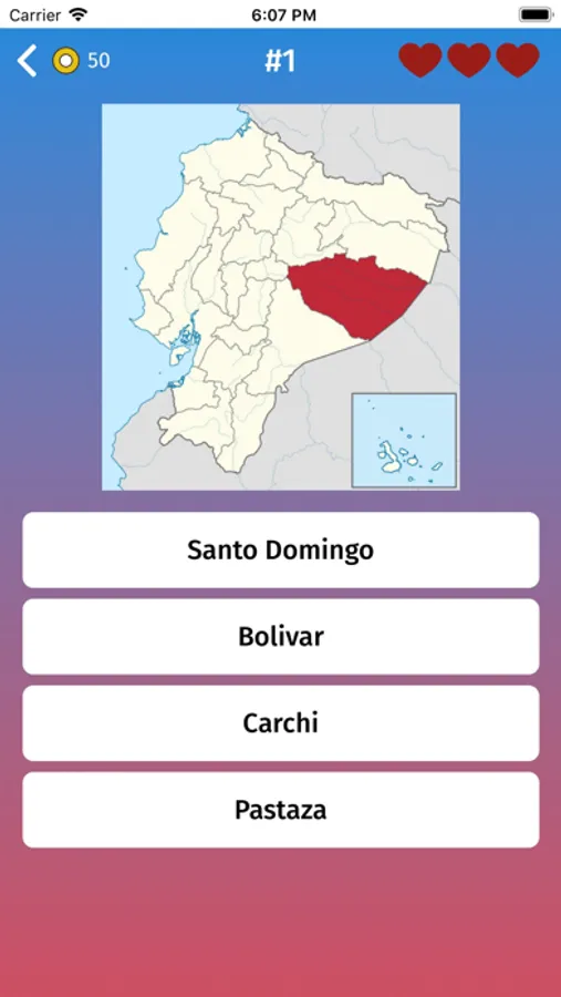 - Multiple choice: guess the states of Ecuador, by selecting one of the variants like in exam.