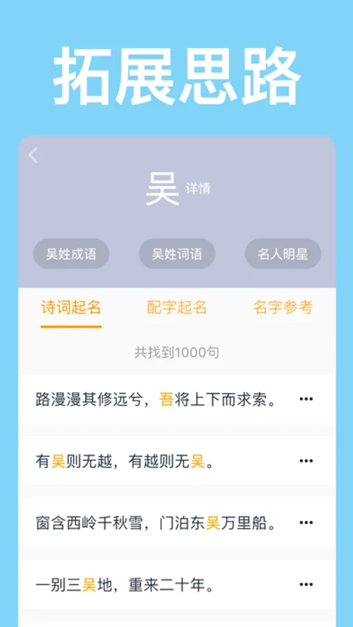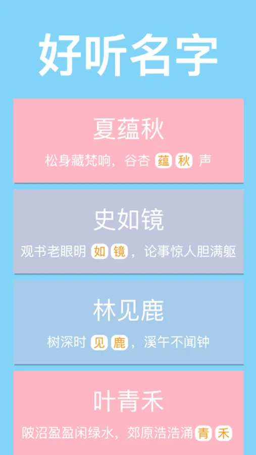 更有文字搭配起名、姓名分析等功能,还有过千个好听名字、数万名人明星名字做参考。