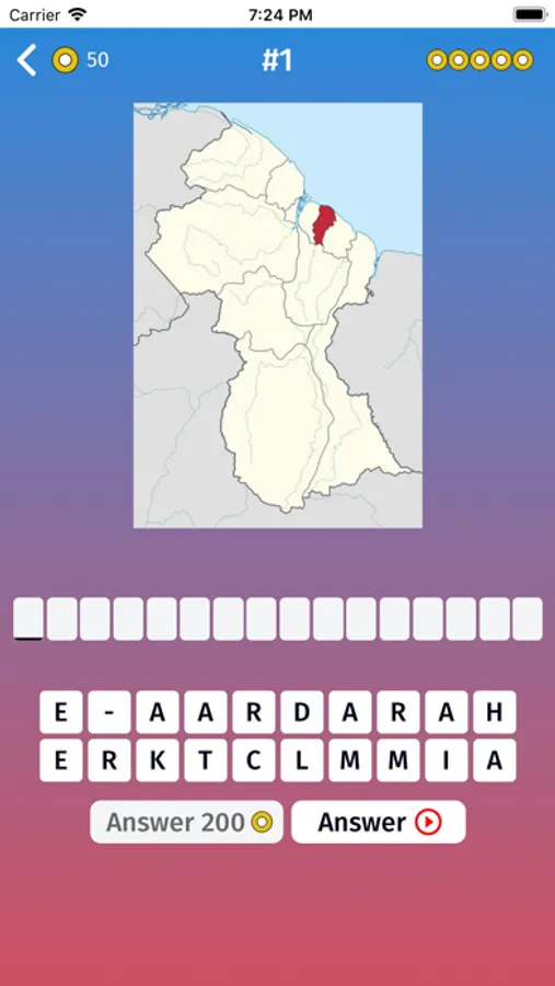 - Blank map: in case you have difficulties, you can use this mode to memorize shapes of Guyana in map puzzle.