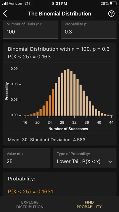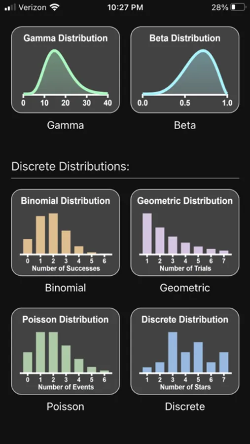 Developed for both students and teachers as a tool to visualize and explore probability distributions and their properties. Don't rely on boring and complicated graphing calculators that don't deserve their name. Instead, use the interactive graphics that this app provides to learn about probability distributions and visualize results side-by-side with the numerical solutions.