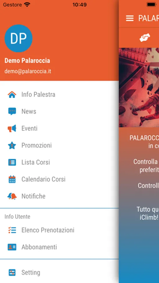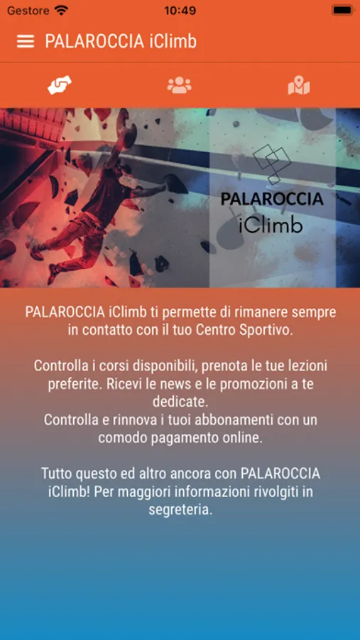 E' possibile, tramite l’app di “Palaroccia iClimb”, far gestire in totale autonomia corsi, lezioni e abbonamenti messi a disposizione dalla struttura sportiva.