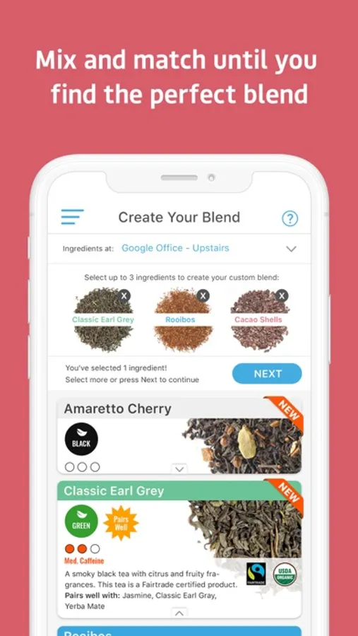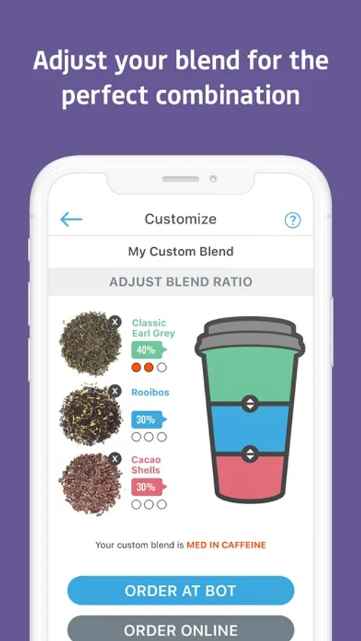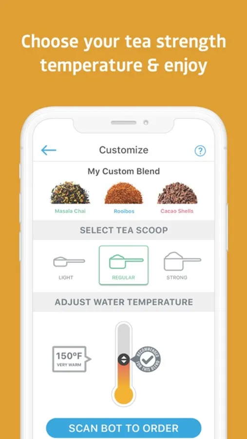 In addition, the app will allow you to customize your tea by adjusting strength and temperature. These preferences are saved to your account to enable easy re-ordering of your favorite blends.